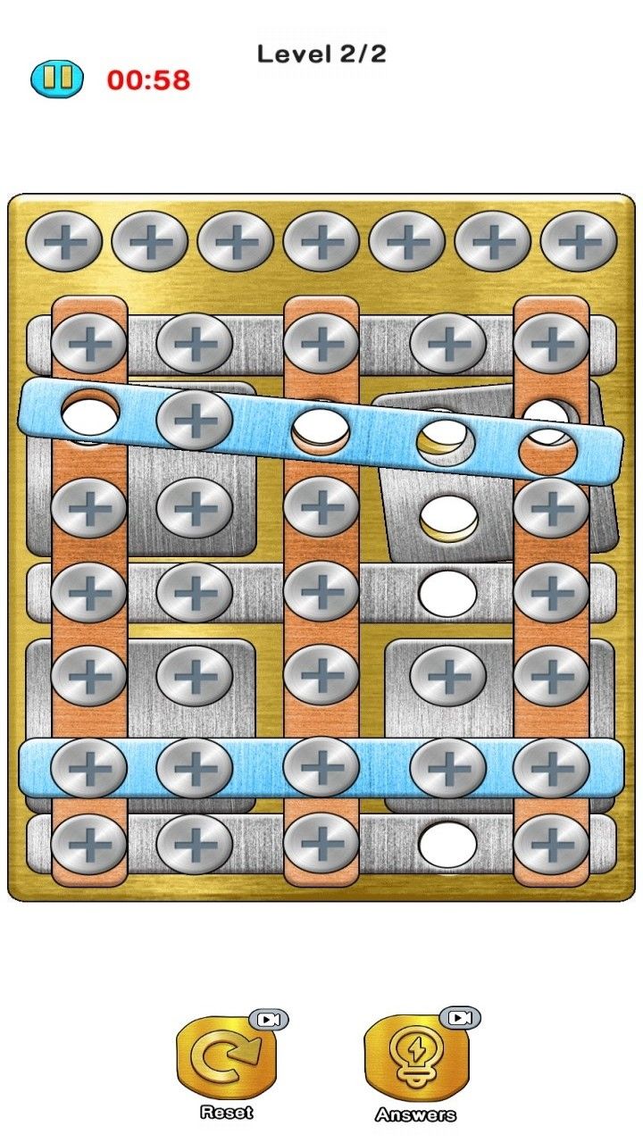 The game’s mechanics are deceptively simple but increasingly complex. Early levels ease players into the concept with straightforward designs, but as they progress, they encounter more intricate patterns requiring careful planning. Some puzzles introduce hidden pins, locked screws, or interdependent components that make each move a test of both patience and foresight.